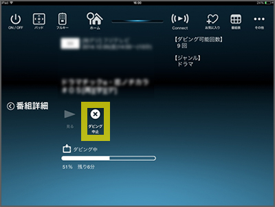 ダビング中の録画番組詳細画面で「ダビング中止」を押す