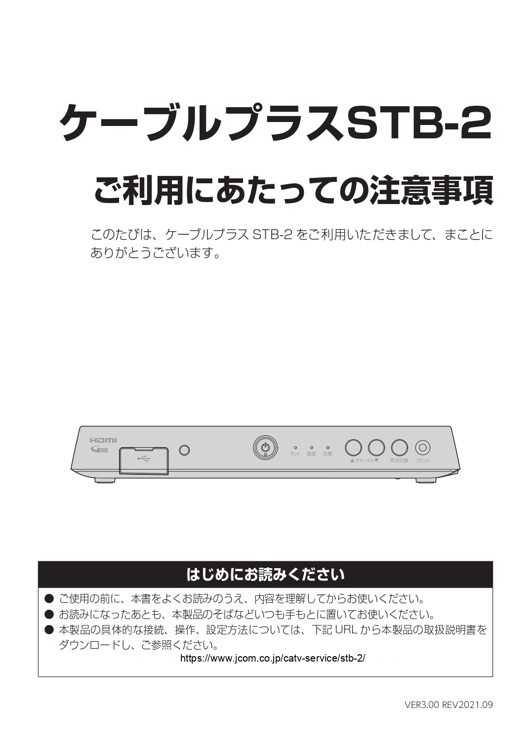 ケーブルプラスSTB-2 ご利用にあたっての注意事項[PDF形式]