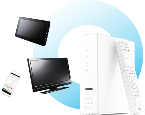 ホーム 主な機能 いつでも、どこでも。テレビをもっと自由に楽しもう! 主な機能へもどる いつでも、どこでも。テレビをもっと自由に楽しもう! これまでテレビ画面でしか楽しめなかった番組が、スマートフォンやタブレットでも楽しむ事ができる。そんな素敵な機能をご紹介します。 お料理中も、手元でばっちり番組視聴! DLNA機能をつかえば、ご自宅のどの部屋にいてもお気軽に番組が視聴できます。 うっかり忘れてしまっても、外出先で録画予約! 遠隔録画機能で、 外出先からでも簡単に録画予約できるので、 つい抑え忘れていた大切な番組も、 ゆっくりお楽しみ頂けます。 ダビングで通勤時間も視聴可能! ダビング機能をつかえば、録画済みの番組をスマホやタブレットに持ち出すことが出来ます。