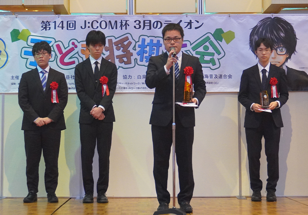The J:COM Award will be presented mainly at the venue of the J:COM Cup March Comes in Like a Lion Children's Shogi Tournament, with the hope that it will serve as a role model for the children participating in the tournament.