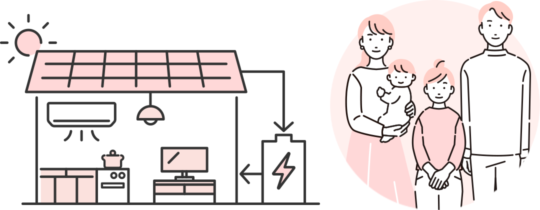 停電や災害などで電力が途絶えても、蓄電池にためた電気が暮らしと家族を守ります。