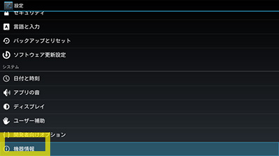 上下キーで移動し、一番下の「ビルド番号」に記載された英数字をご確認ください。